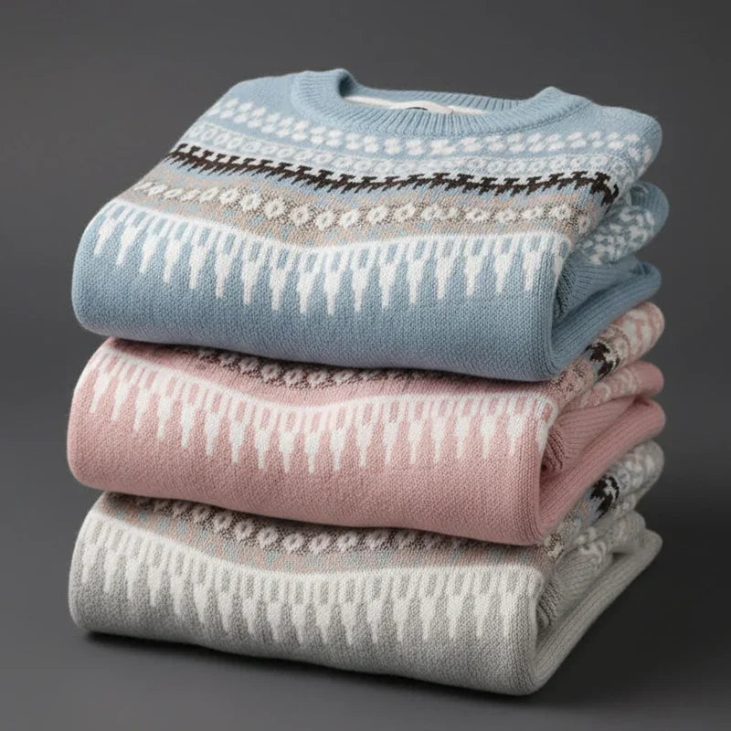 Motif géométrique unique : design hivernal travaillé, avec détails précis et couleurs fidèles